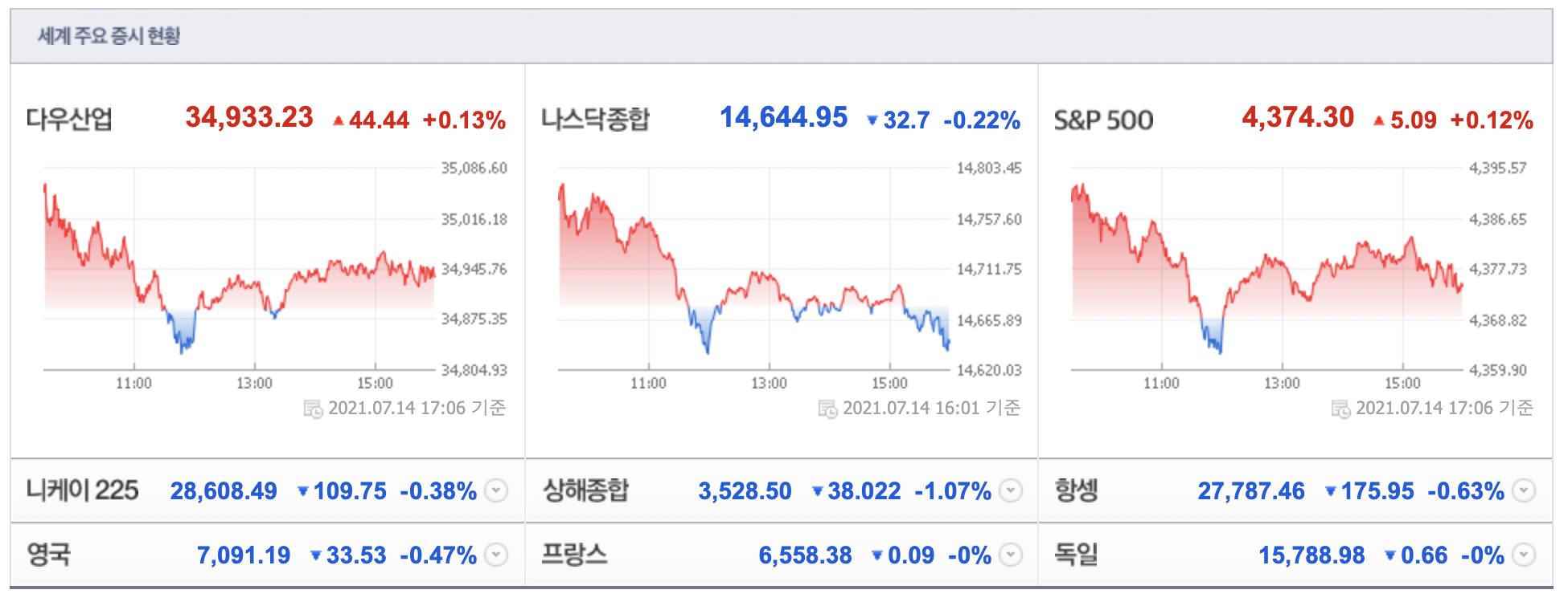 | 7/12(월) 다우·S&P '사상최고'...여행주 반등, GM 4.8%↑[뉴욕마감] (1) | 2021.07.12 |