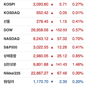 반응형 전체 글687 11/14(목) 수능일, [뉴욕마감] 무역협상 난기류에 갈팡질팡…다우↑·나스닥↓ 뉴욕증시가 혼조세로 마감했다. 1단계 무역합의를 위한 미중 협상이 암초에 부딪혔다는 소식에 관망세가 두드러졌다. ◇미중 무역협상 암초…"中, 농산물 구매액 명시 거부" 뉴욕증시는 좋아보이지만 무역협상 결과에 따른 대응이 필요할듯... 주식과 2019. 11. 14. 11/12(화) 뉴욕증시, 무역협상 불확실성에 혼조…S&P, 0.2% 하락 마감 양국의 협상 타결 기대가 다소 후퇴하면서 글로벌 증시가 전반적으로 약세 압력을 받았다. 홍콩 시위가 격화된 점도 글로벌 증시에 부담으로 작용했다. 코스피는 양매도, 코스닥은 양매수... 코스닥 기관 매수가 들어와야 하는데.. 주식과 2019. 11. 12. 11/8(금) 뉴욕증시, 미·중 기존 관세 철폐 기대감에 상승 마감…다우 0.66% 가오펑(高峰) 중국 상무부 대변인은 브리핑에서 "지난 2주 중미 쌍방 협상 대표들은 각자의 관심사를 적절히 해결하기 위해 진지하고 건설적인 토론을 했다"며 "양측은 협상 진전에 따라 단계적으로 고율 관세를 취소하기로 동의했다"고 말했다. 거래량 줄면서 마땅한 매수주체가 없네. ㅠㅠ 뭔 모멤텀이 있을까... 오ㅣ국인 매수는 괜찮아 보이는데 기관의 매도가 심상치가 않다. 다행인것은 연기금의 매도가 멈춘게 다행이지만 내일 흐름을 지켜 봐야 할것 같아. 주식과 2019. 11. 8. 11/7(목) 뉴욕증시, 미중 정상회담 연기 소식에 혼조… 다우 0.00%↓ 뉴욕증시에서 주요 지수는 미·중 정상회담이 당초 예상보다 늦어질 수 있다는 보도 등으로 혼조세를 보였다. 지수 포지션은 영호한 흐름 혼조에 외국인은 양매도, 기관은 코스피만 매수 코스닥은 연일 매도. 다음주 실적 발표를 앞두고 리밸런싱하는 중인가? 투신과 사모 매도세가 장난 아님 ㅠㅠ 코스피는 양호한 차트, 코스닥은 2음봉 한번 더 반등 할 기세.. 오늘 네패스 3분기 잠정 실적발표.. 잠시 보는 사이에 반등 나오길래.. 그제싼 물량 전량 익절하고 손실 물량은 그대로 보유중.. 매출액은 컨센 대비 소폭 상승, 영업이익은 23%하락.. 233억 예상에 179억이라.. 그래서 종가로 하락하더니 음봉 만들고 마감. 역쉬 기관은 이 상황을 알고 매도 중이였던가? 정보 부족한 개인만 매수로.. 주식과 2019. 11. 7. 11/6(수) 뉴욕증시, 미중 무엽협상 낙관론 속 혼조…다우 0.11%↑ 뉴욕증시에서 주요 지수는 미국과 중국의 무역 협상 낙관론이 지속하는 가운데 혼재됐다. 월스트리트저널 등 주요 외신은 미국과 중국이 무역 합의를 위해 기존 관세를 일부철회하는 방안을 적극적으로 검토하고 있다고 보도했다. 주식과 2019. 11. 6. 11/5(화) 뉴욕증시, 미·중 무역 협상 낙관에 랠리…3대 지수, 사상 최고 마감 뉴욕증시에서 주요 지수는 미국과 중국의 무역협상 진전에 대한 기대로 일제히 사상 최고치를 기록했다. 다우지수는 지난 7월 중순 이후 약 4개월 만에 종가 및 장중 가격 모두에서 사상 최고치를 다시 썼다. S&P 500 지수와 나스닥도 지난주에 전고점을 돌파한 이후 사상 최고치 경신 행진을 이어갔다. 윌버 로스 미국 상무장관은 지난 주말 인터뷰에서 중국 화웨이에 대한 미 정부 판매 허가가 조만간 나올 것이라고 말했다. 지수 좋군 다우 전고점 돌파에 상승 마감 여기도 역쉬.. 바ㄴ도체가 제일 강하네~~ 뉴욕증시는 고용지표, 미중무역 낙관에 좋은 흐름.. 우리는 전체 지수도 상승하지만 내 보유 종목만... 이번 매수도 원칙을 어긴건가? 다음주가 실적 발표니까 함 지켜봅시다. 외국인은 양매수.. 주식과 2019. 11. 5. 11/1(금)뉴욕마감] 미중 무역협상 회의론…다우 0.5%↓ "中, 미국과 포괄적·장기적 무역합의에 의문"…美 폼페이오 국무장관 "중국에 맞서야" 미국의 신규 실업자 수가 다시 늘었다는 소식이 증시에 부담을 줬다. 신고가부근에 잘도 버티는중.. 반도체는 신고가 갱신도 하고... 코스피시장, 외국인 순매수에 이틀째 상승, 2,100선 상회. 기관은 양쪽 다 매도.. 외국인은 코스피만 매수.. 주식과 2019. 11. 1. 10/31(목) 금리인하,당분간 동결, S&P 신고가 美 금리 0.25%p 또 인하, 당분간 동결 예고…11월 칠레 APEC 정상회의 취소, 미중 1단계 무역합의 서명 차질 우려 예상대로 인하 당분간 동결이라... 본격적인 실적시즌... 기대해야하나? 주식과 2019. 10. 31. 10/28(월) 무역협상기대감 상승마감 지난 주말 뉴욕증시가 美中 무역 협상 기대감 부각 등으로 상승했고, 유럽 주요국 증시는 브렉시트 불확실성 등으로 혼조 마감. 지수는 보합, 기관은 양지수 매수, 특히 금투의 매수가 눈에 띄고 외국인은 코스닥만 매수... 양지수 전고점을 앞두고 조정을 한번 할찌 아니면 강한 흐름으로 전고점을 돌파할지.. 하지만 그런 모멘텀은 실적인데.. 실적은 2주인데.. 조정된다면 추가 매수후 홀딩 전략으로 갈렵니다. 바이오와 전기차 왜 오른거니? 꾸준한지는 지켭봐야겠죠? 주식과 2019. 10. 28. 10/25(금) 뉴욕마감] MS·테슬라 '깜짝실적'…신고가 향해 한발 더 美 제조업·서비스업 일제 반등…예상치 상회 시장의 예상을 깨고 3/4분기 흑자전환에 성공한 테슬라의 주가는 이날 17% 급등했다. 페이팔도 3/4분기 매출액이 급증했다는 소식에 약 9% 뛰었다. 미국의 10월 서비스업 PMI 예